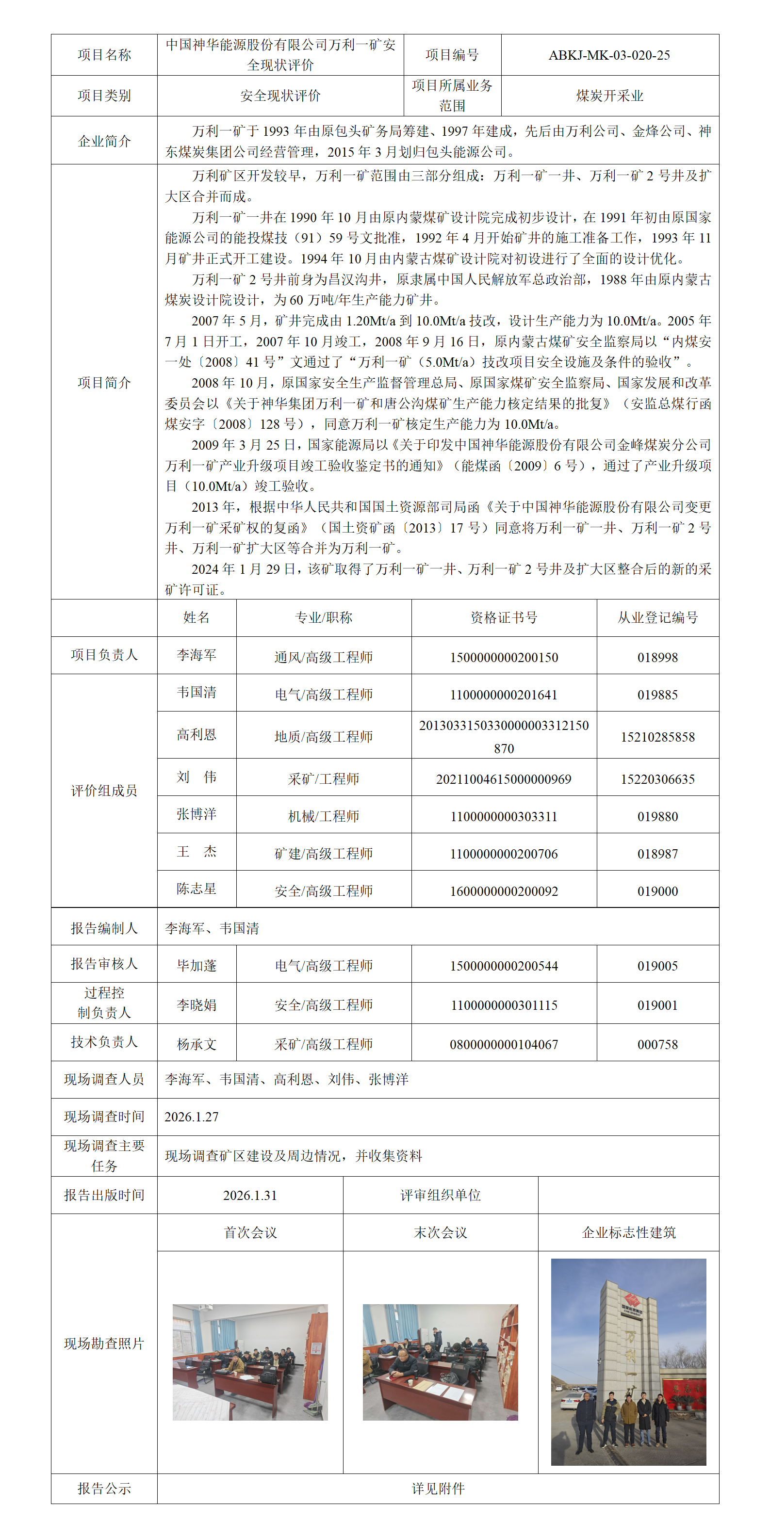 附件:(公示表附录)中国神华能源股份有限公司万利一矿安全现状评价报告.pdf